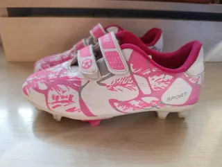Botas de tacos para jugar al fútbol número 34 - Diseño en color blanco y rosa. - Cierre con velcro. - Detalle de la palabra SPORT en el lateral.