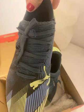 Botas de fútbol Puma Future para niño, talla 36. - Color azul y amarillo- verde - Logo de Puma en el lateral. - Cordones para un ajuste seguro. - Suela para césped artificial o natural.