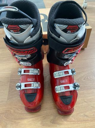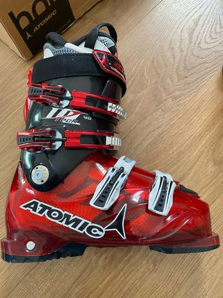 Botas de esquí hombre Atomic M Tech 90 en color rojo y negro, con muy poco uso. - Talla 27. - Horma 102 mm. - Cierre con 4 ganchos de aluminio. - Correa de velcro en la parte superior.