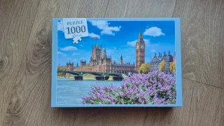 Puzzle de 1000 piezas con una imagen de Londres, destacando el Big Ben y el Palacio de Westminster. - Vista del río Támesis con flores. - Montado 1 vez - Medidas 70x50 cm Más puzzles en mi perfil