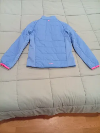 Chaqueta térmica de esquí en color azul con detalles en rosa. Talla 10 años - Cremallera frontal. - Bolsillos laterales con cremallera. - Puños y cuello con detalles en rosa.