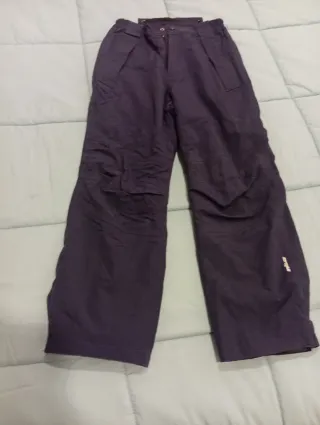 Pantalón de esquí o snowboard de la marca The North Face en color morado. Muy poco uso en talla L de niña. Bolsillos frontales con cremallera. Cintura con trabillas para cinturón.