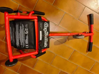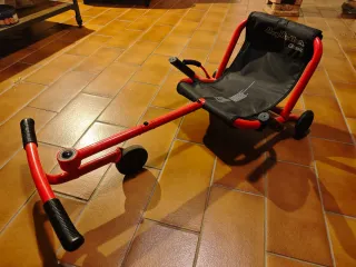 Patinete Ezyroller Classic en color rojo, una alternativa divertida a la bicicleta. - Estructura de metal rojo. - Asiento de tela negro. - Ruedas negras. Para pequeños y grandes, tiene el tubo de ampliación.