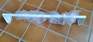 Barra de dominadas blanca, ideal para entrenar en casa. Se sujeta con soportes a la pared, normalmente encima de una puerta. - Nueva sin estrenar - 98.6cm de larga - Soporta hasta 200Kg Ha sido un regalo que no voy a utilizar, por eso la vendo.