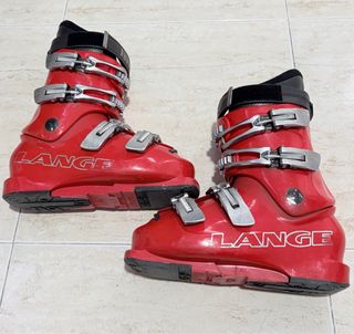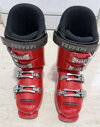 Botas de esquí Lange Ferrari en color rojo, talla 23.5 (Mondopoint) / 37 aprox. - Cierre con hebillas. - Diseño deportivo. - En buen estado
