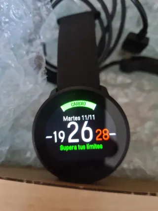 El Suunto 3 Fitness viene preparado para todos tus deportes, desde carreras, natación y bicicleta hasta entrenamiento en yoga, gimnasio, senderismo y muchos otros. El reloj utiliza cadencia desde la muñeca para medir velocidad y distancia en actividades de correr y caminar, por lo que también puedes seguir tu velocidad y distancia en interiores. La medición de la frecuencia cardíaca desde la muñeca garantiza la facilidad de uso, y la sumergibilidad hasta 30 metros te permite nadar con el reloj sin preocupaciones. Muy poco uso ,alguna marca sin importancia, apenas visible, con cargador.