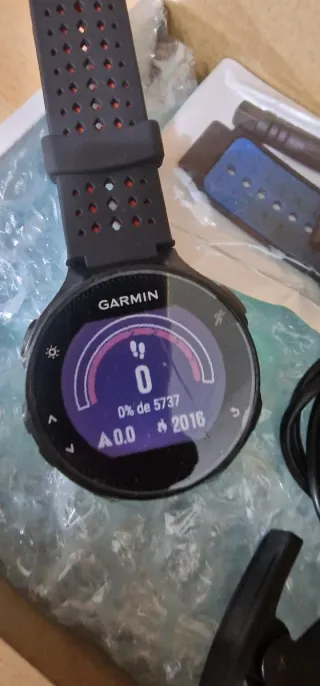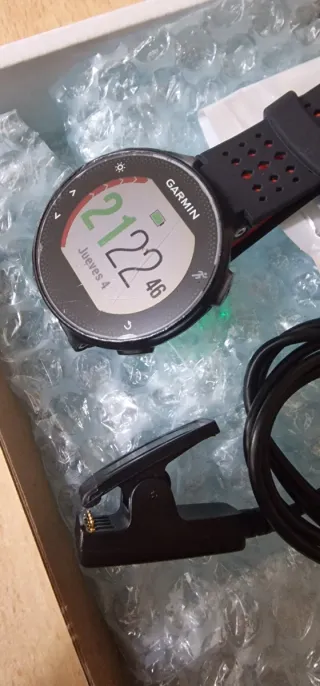 Reloj deportivo Garmin Forerunner 235 con GPS. -Reloj de segunda mano con evidentes marcas de uso, un arañazo en pantalla pero no está agrietado, no influye para nada en su mecanismo,ver fotos , funcionamiento y batería perfecto,con cargador incluido.