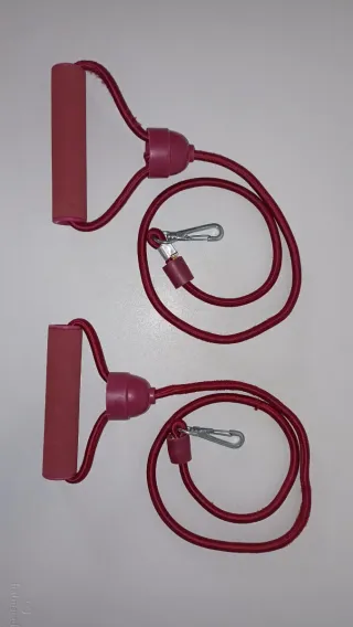 Set de barras de deporte con mangos ergonómicos. - Dos barras con mangos rojos. - Dos mangos negros de repuesto.