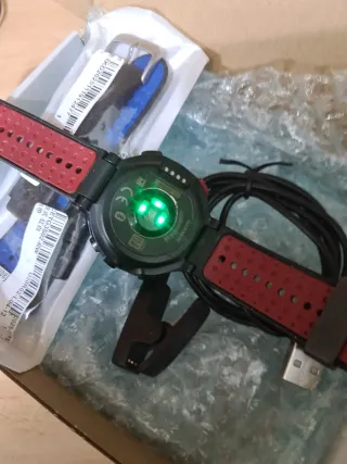 Garmin Forerunner 310XT, un reloj GPS diseñado especialmente para los amantes del deporte al aire libre. Este dispositivo se ha ganado su lugar en el corazón de los ciclistas gracias a su precisión y durabilidad. Con características que permiten monitorizar distancia, velocidad y calorías quemadas, el Forerunner 310XT es ideal tanto para principiantes como para atletas experimentados,natación, carreras,bicicletas, triatlón etcétera. - Incluye cables de carga.
