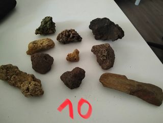 Consta de,9 rocas volcánicas,1 roca pizarra,2 simulaciones de troncos,otras dos simulaciones de troncos con ramas y un barco. El precio suelto viene en cada foto, sean de 1 de los artículos o de los dos que vienen fotografiados... Si te llevas todo a 30