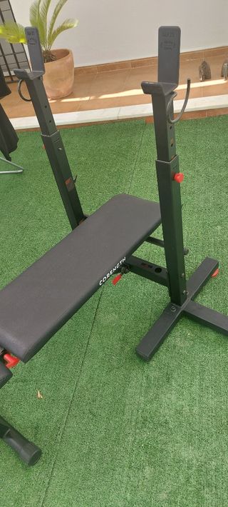 Banco de pesas CORENGTH en buen estado, ideal para entrenar en casa. - Estructura metálica robusta. - Tapicería negra. - Ajustable en altura.