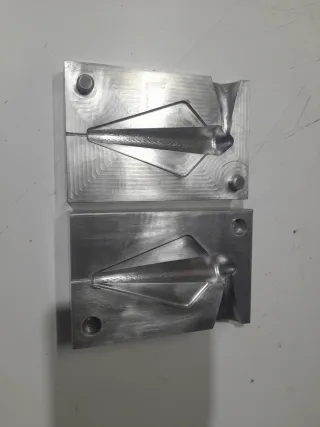 Molde de aluminio para la fabricación de plomos de pesca, fabricado en centro de mecanizado cnc. - Fabricado en aluminio 6065. - Diseño para señuelos en aleta. - Agujero varilla 1,6 mm. - 125 gramos de plomo. #moldeplomo #pesca #cañadepescar #moldedeplomo #moldeplomada #señuelopesca #moldeplomofundido #cazaypesca #selueñocaza #señuelopeaca
