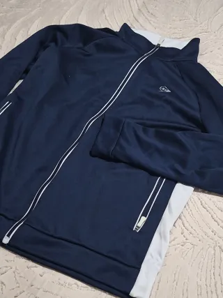 Chaqueta deportiva de la marca Dunlop en color azul marino. - Cierre completo con cremallera. - Cuello alto. - Bolsillos laterales con cremallera. - Logo de Dunlop en el pecho.