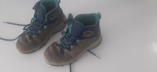 Botas de montaña para niños en talla 30. Perfectas para senderismo y actividades al aire libre. - Botas de cuero. - Color marrón y azul. - Cierre con cordones. - Caña media para mayor sujeción.