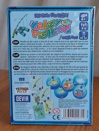 Juego de mesa Crazy Fishing, completamente nuevo y sin abrir. Crazy Fishing es un juego de mesa para dos o más pescadores que compiten para atrapar el pez más grande de todo el mar. Intenta pescar más peces y más grandes que los de los demás jugadores, para ser el jugador con más puntos. Crazy Fishing es un juego familiar, del que podrán disfrutar todo tipo de jugadores, amantes o no de la pesca. El juego cuenta con una dificultad modulable por lo que será accesible para todo tipo de jugadores.