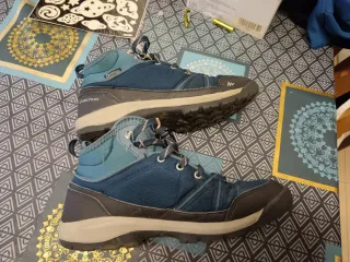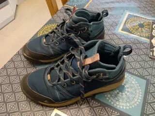 Botas de montaña Quechua en talla 39. Diseñadas para senderismo y actividades al aire libre. Venta en Pamplona y comarca - Color azul marino. - Cierre con cordones. - Caña media para mayor sujeción.