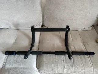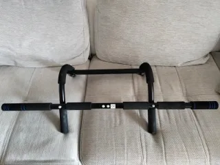 Barra de dominadas negra con agarres acolchados. - Construcción robusta. - Diseño ajustable para diferentes marcos de puerta. - Agarres de espuma para mayor comodidad.