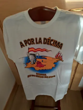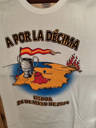 Camiseta conmemorativa del Real Madrid. - Diseño A por la Décima. - Incluye mapa de España con Lisboa y Madrid. - Fecha: 24 de mayo de 2014. Hago envíos por Wallapop.
