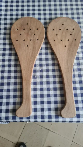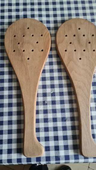 Dos palas de frontón hechas de madera. Son ideales para practicar este deporte. - Material: Madera - Diseño con agujeros