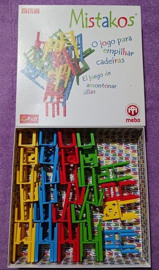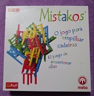 Juego de mesa Mistakos, ideal para apilar sillas. Juego en familia . Apila las sillas para que la estructura no se desplome. Demuestra tu destreza e ingenio y conviértete en el campeón de Mistakos. Este juego es adecuado para adultos y niños a partir de 5 años. Diviértete con tus amigos y familiares con un juego de mesa para 1 o 4 jugadores. - Incluye sillas de colores: azul, verde, rojo y amarillo. - Fomenta la destreza y el equilibrio.