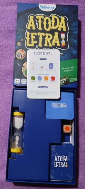 Juego de mesa A Toda Letra de Skillmatics. Es un juego de categorías rápido, divertido e ingenioso. "A toda letra" es un juego de mesa de rapidez mental y vocabulario en el que los jugadores compiten por ser los primeros en descartar sus cartas de letras, nombrando palabras que coincidan con una categoría y una letra inicial específicas. - Edad recomendada: +6 años. - Jugadores: 2-5. - Tiempo de juego: 30 minutos.