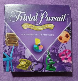 Juego de preguntas y respuestas Trivial Pursuit. Años 90 El Trivial Pursuit es un icónico juego de mesa de preguntas y respuestas donde los jugadores compiten por demostrar su conocimiento general en diversas categorías y ser el primero en conseguir las seis piezas de color, conocidas como "quesitos" - Edición Genus III. Perfecto para coleccionistas - Incluye nuevas preguntas y respuestas.