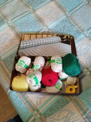 Lote de ovillos de hilo de la marca La Americana. - Varios colores disponibles: blanco, rojo, verde y amarillo. - Ideal para labores de costura y manualidades.