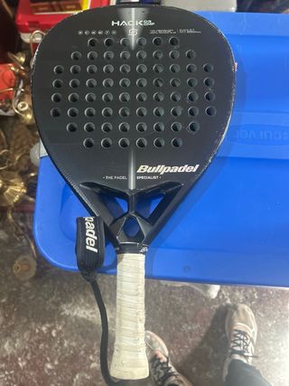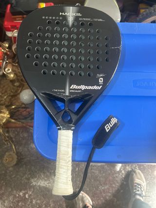 Raqueta de pádel Bullpadel Hack 03, modelo de Paquito Navarro. - Color negro. - Incluye correa de muñeca. - Diseño con agujeros característicos.