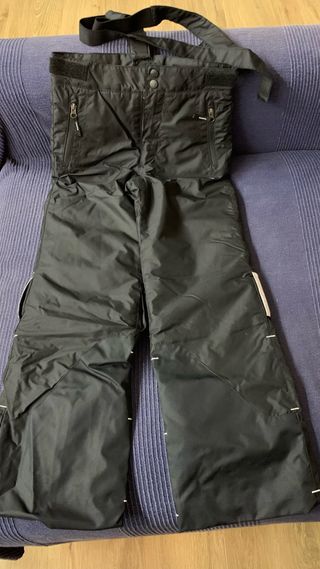 Pantalón de esquí negro para niño, talla 8 años (125-132 cm). Ideal para disfrutar de la nieve con comodidad. - Tirantes ajustables. - Bolsillos con cremallera. - Tejido resistente al agua y al viento. Puesto en una única ocasión, estado impecable