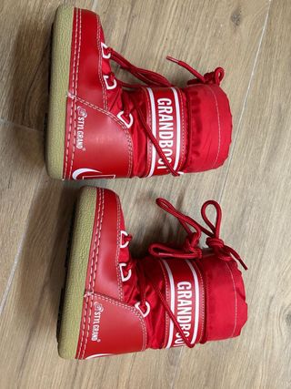 Botas de nieve rojas para niño de la marca Grandvoot. - Cierre con cordones. - Banda lateral con logo. - Suela de goma. Talla 26-28. Prácticamente nuevas, puestas en una única ocasión