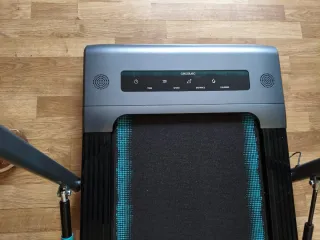Cinta de correr o andar Cecotec, completamente nueva. - Diseño moderno en gris. - Pantalla digital con información de tiempo, velocidad, distancia y calorías. DrumFit WayHome 600 Pad ultracompacta, Cinta de andar con amplia superficie de carrera de 100x40 cm, barra de sujeción plegable horizontalmente, altavoces con funcionamiento Bluetooth, soporte para tablet, pantalla LCD de alta visibilidad, mando a distancia, velocidad de hasta 6 Km/h y potencia de 550 W / 0.75 CV. La vendo porque no la voy a usar, fue un regalo de navidad.