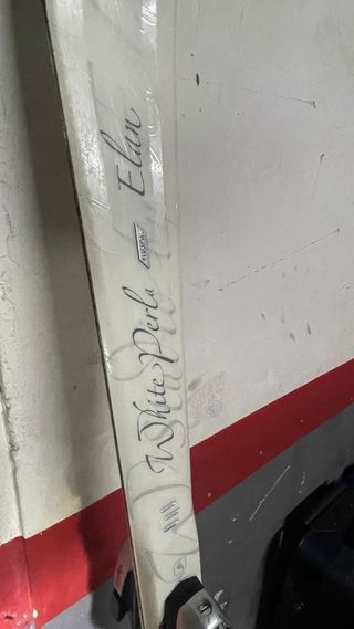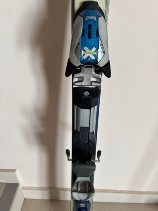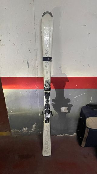 Esquís blancos con fijaciones incluidas. Listos para la nieve. - Diseño blanco con detalles. - Fijaciones de esquí montadas.