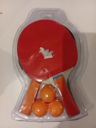 Set de ping pong de la marca YILE, ideal para iniciarse en el deporte. Incluye dos palas y tres bolas. - Diseño de palas con mango naranja. - Bolas de color naranja. - Incluye información de Speed, Spin y Control en el empaque.