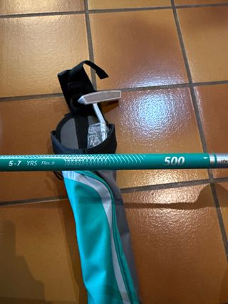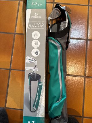 Set de golf INESIS para niños de 5 a 7 años, diseñado para alturas entre 110 y 125 cm. - Incluye bolsa de golf. - Diseñado para jóvenes golfistas.