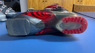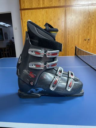 Botas de esquí de la marca Nordica, modelo Easy Move X5. Mondopoint 280 - 285. Longitud total de suela 325. - Color gris oscuro con detalles en rojo. - Cierre con 4 ganchos metálicos y velcro superior. - Diseño ergonómico para mayor comodidad.