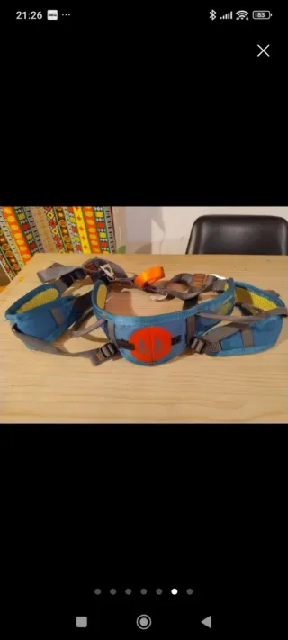 Arnés de espalda junior de la marca Simond. - Color azul con detalles en amarillo y naranja. - Hebillas ajustables para mayor comodidad. - Diseño ergonómico para niños.