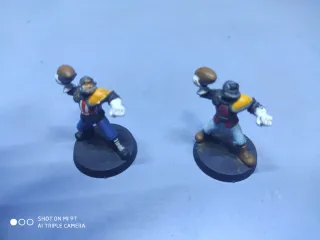 Conjunto de miniaturas para Blood Bowl, representando un equipo humano. Originales de la caja de los 90, están a medio pintar - Figuras de plástico. - Base circular negra.