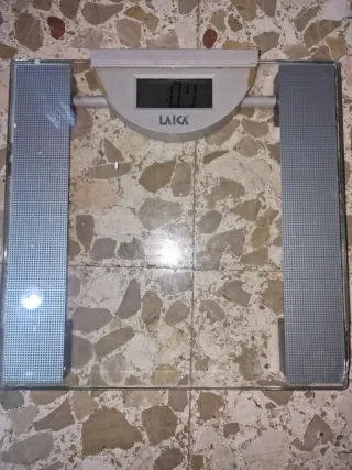 Balanza digital de cristal con pantalla LCD. - Diseño moderno y elegante. - Superficie de vidrio templado. - Plataformas antideslizantes. La pantalla falla un poco pero se ven los números