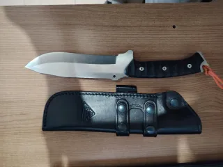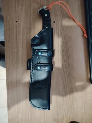 Cuchillo de supervivencia CDS Explorer con funda de cuero. - Hoja de acero mv-58. - Empuñadura ergonómica negra. - Incluye funda de cuero con pasador para cinturón y pedernal. - Cordón naranja en el mango.