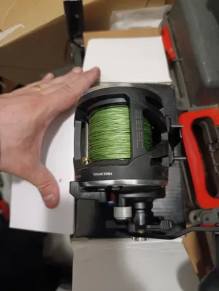 Carrete de pesca Penn con hilo verde. - Modelo Penn. - Hilo de pesca verde.