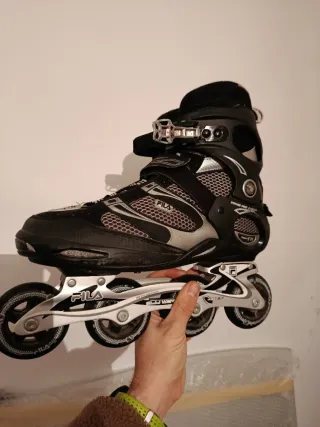 Patines en línea de la marca Fila. Se han usado muy poco. Si se desan más fotos pedirlas sin probema. Talla 45,5. Están perfectos. Los vendo porque siempre me estuvieron un poco grandes y nunca llegué a adaptarme bien