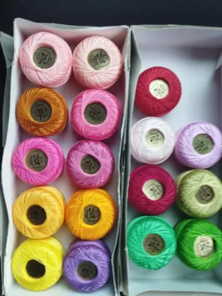 Lote de 15 ovillos de hilo Finca Presencia, tamaño N8. Nuevos, restos de mercería por cierre. - Hilo de alta calidad para labores de costura y bordado. - Colores variados para diferentes proyectos. Ovillos de 10 gr.
