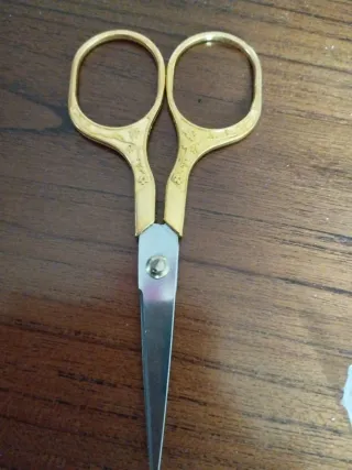 Elegantes tijeras de costura con un acabado dorado. Tijeras de alta calidad. Restos de mercería por cierre. Más artículos de mercería en mi perfil. - Diseño clásico con asas ovaladas. - Hojas metálicas afiladas. - Detalle decorativo en las asas.