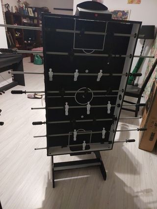 Mesa de juegos multifuncional que incluye futbolín. Ideal para pasar ratos divertidos. - Diseño en color negro. - Barras de futbolín con jugadores blancos y negros.