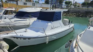 Embarcación Taylor de 5,30 metros de eslora. - Casco blanco. - Ideal para pesca o paseo. SOLO CASCO DE FIBRA SONDA EAGLE 4" EMISORA 2 BATERIAS PANEL SOLAR BOMBA ACHIQUE BOMBA BALDEO CON MANGUERA TOLDO FRONTAL Y TOLDO BAÑERA 2 VIVEROS AUTOVACIABLE 4 cañeros
