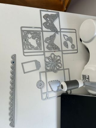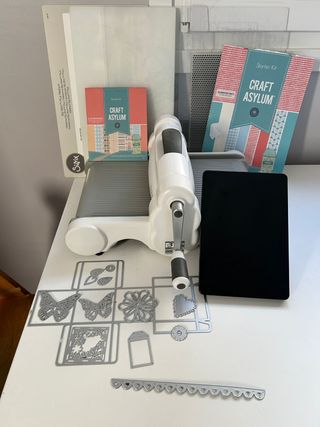 Se vende troqueladora Sizzix Big Shot Plus junto con varios accesorios. - Troqueladora Sizzix Big Shot Plus. - Plataforma Big Shot Plus. - Dos paquetes de Starter Kit Craft Asylum con hojas A4. - Set de troqueles metálicos con mariposas, flores, hojas, corazones y etiquetas. - Base de corte o plataforma de corte. - Placas de corte transparentes.