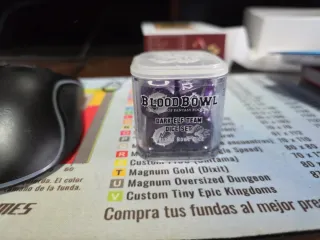 Set de dados para Blood Bowl, equipo Dark Elf. - Dados morados con detalles en blanco. - Incluye dados para Blood Bowl.