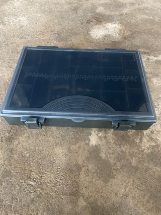 Caja de pesca nueva, sin uso, con tapa transparente. Dispone de compartimentos interiores regulables, ya que se pueden ajustar a la medida que quieras gracias a los separadores de plástico extraíbles. Ideal para organizar anzuelos, señuelos y pequeños accesorios. Medidas: • Largo: 34 cm • Alto: 5-6 cm • Ancho: 23 cm