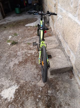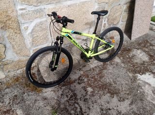 Bicicleta de montaña Rockrider para niñ@s, de 24 pulgadas. Está en buen estado, con algunos signos de uso. - Marca: Rockrider - Tamaño de rueda: 24 pulgadas - Color: Amarillo verdoso