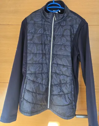 Cortavientos acolchado con mangas de tejido liso y un llamativo estampado paisley en el panel frontal. - Cierre de cremallera. - Cuello alto. - Mangas largas.